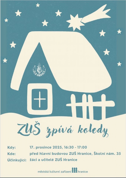 Přijďte si s námi zazpívat koledy ve středu 17. prosince 2025 od 16:30 do 17 hodin před hlavní budovu ZUŠ!